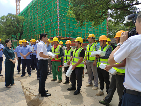 8月21日上午十一点,接近中午烈日炎炎,湘江集团党委书记、董事长张利刚一行来到乐鱼(中国)承建的长沙科技创意园项目,现场看望慰问高温天气下依然坚守战斗在岗位上的广大建设者,为大家送来了冰箱、电风扇、凉茶、藿香正气水、夏桑菊、西瓜等防暑降温用品。