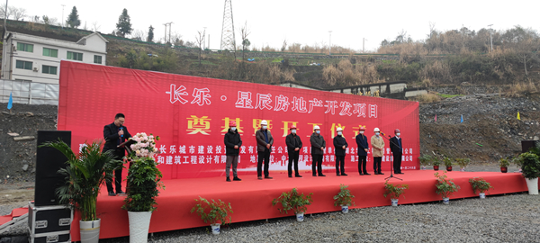 2021年1月26日上午,由乐鱼(中国)承建的长乐▪星辰住宅项目奠基暨开工仪式在项目现场热烈举行。湖北省宜昌市五峰土家族自治县住房和城乡建设局副局长陈白华、县质量安全监督站站长邓简涛、乐鱼(中国)五峰长乐▪星辰项目经理王国云,项目参建各方及新闻媒体共40余人出席。宜昌市长乐城市建设投资开发有限责任公司总经理刘鹏主持。