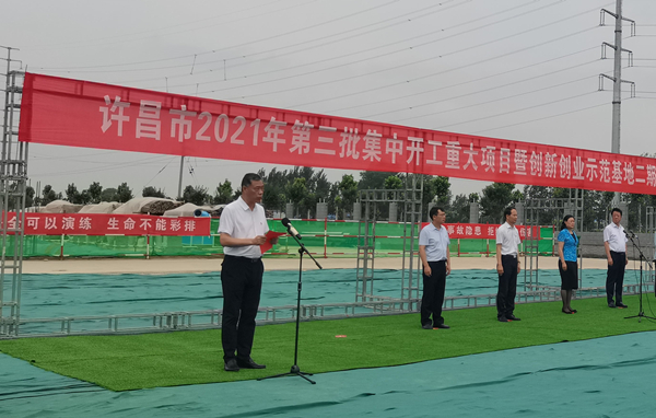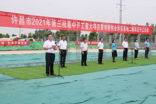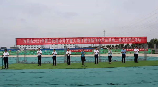 7月10日上午,河南省许昌市2021年第三批集中开工重大项目暨创新创业示范基地二期项目开工仪式顺利举行。许昌市委常委、纪委书记、监委主任方婷,魏都区委书记李朝锋,区人大常委会主任申健民,区政协主席杜晓辉,区委常委、区委办主任程中山,区委常委、区纪委书记、区监委主任徐光,魏都产业集聚区管委会主任楚文选,乐鱼(中国)河南分公司总经理黄辰,魏都区政府相关部门、投资公司、产业集聚区、霸陵办事处等单位负责人参加活动。区委常委、常务副区长张挪威主持仪式。