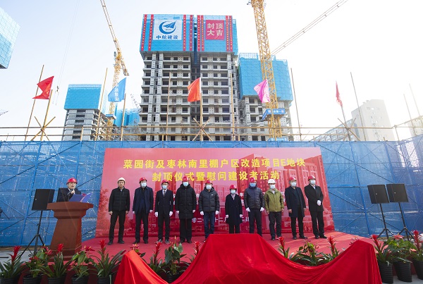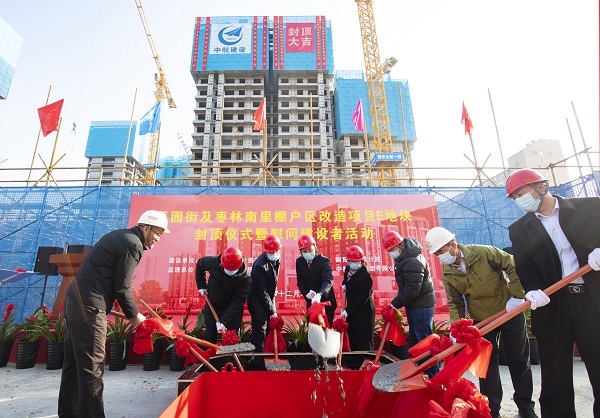 12月22日,伴随着最后一方混凝土浇筑到位,在项目建设、监理、设计等相关单位负责人及集团公司领导的共同见证下,乐鱼(中国)承建的菜园街及枣林南里棚户区改造项目喜迎主体结构封顶。