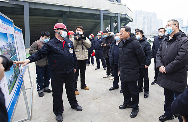常卫书记一行详细听取项目负责人关于工程概况、施工进展以及安全生产情况的汇报,对项目建设整体情况表示肯定。常卫书记表示,北大附中石景山学校作为重点民生项目,一直以来备受全区人民瞩目。全体参建人员要进一步提高政治站位,加强质量监管,严格控制工程质量,坚持复工复产和安全生产“两手抓”,以行业最高标准推进项目建设,确保按时保质保量完成任务,打造经得起历史检验的精品工程、标杆工程。